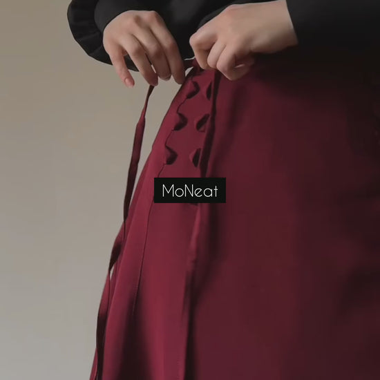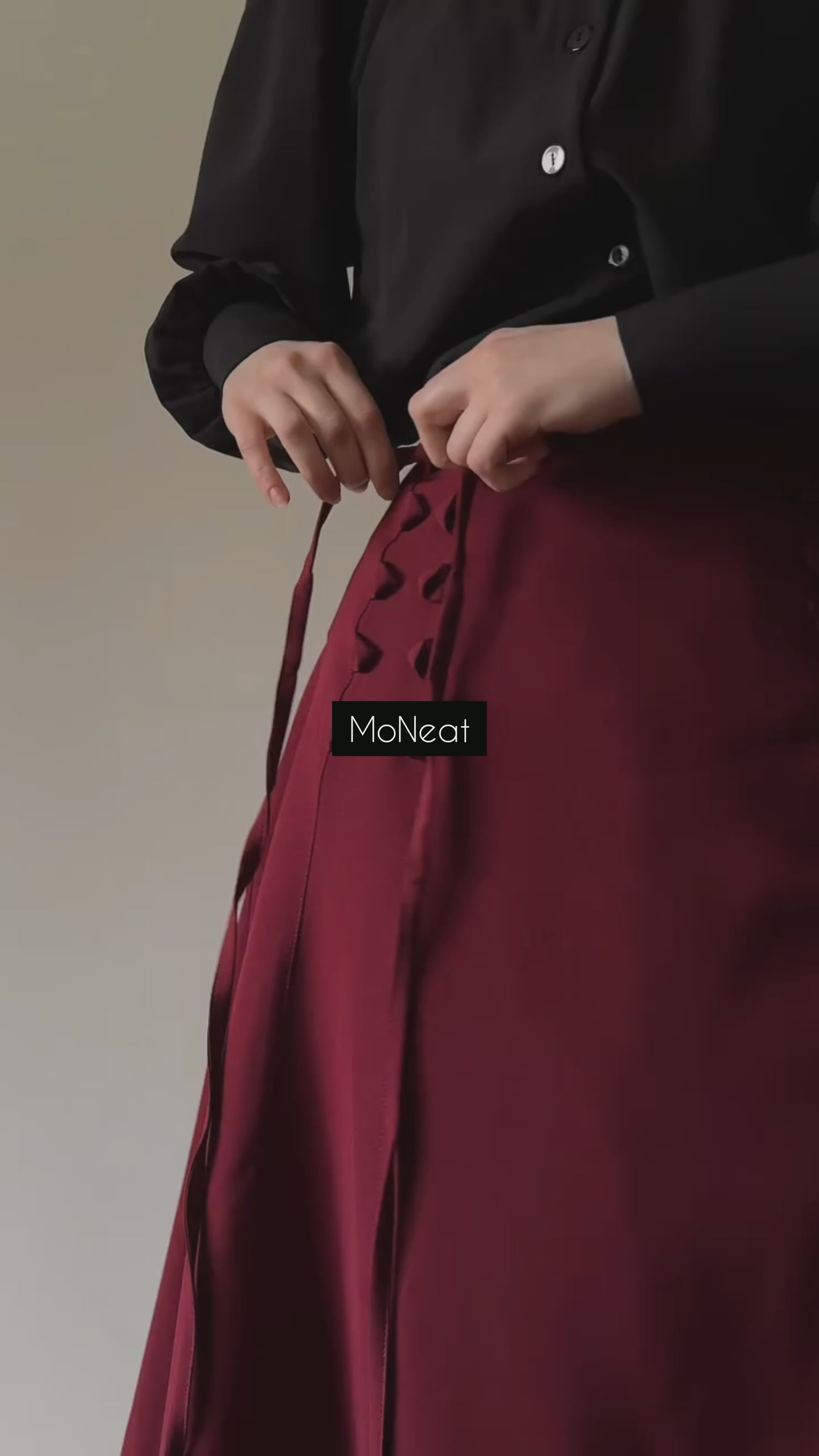 تنورة بقَصّة انسيابية وتفاصيل كورسيه جانبية تزيد الخصر جمالًا، مع قميص أسود كلاسيكي يعكس شخصيتك القوية 👑🖤